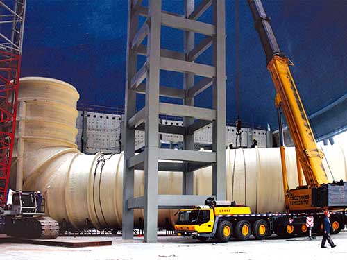 大型現(xiàn)場玻璃鋼儲罐介紹 大型現(xiàn)場玻璃鋼儲罐以熱固性樹脂為基體材料,玻璃纖維為增強(qiáng)材料,采用連續(xù)纖維進(jìn)行螺旋纏繞,工藝先進(jìn),結(jié)構(gòu)合理。具備一般玻璃鋼儲罐的輕質(zhì)高強(qiáng)、耐化學(xué)腐...